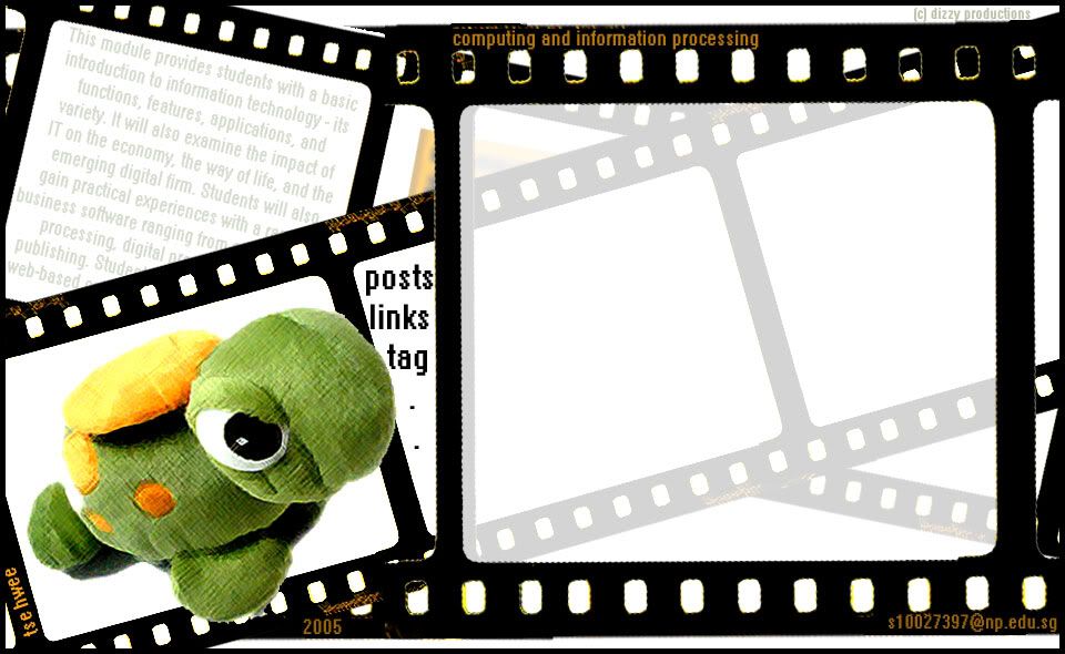 finally, we have come to the end of this CIP module. other than the final exam coming up on the 27th february, i think we are quite done with the module. guess it`s time for reflection! =)in my point of view, the syllabus covered in this module was quite appropriate. as expected, we learnt what are computers, and the uses and types of computers. then we went into detail of hardware, softwares, internet, security and privacy. these are all sorts of things related to computing and information processing. however, i think maybe more topics could be included. for example, more in-depths of macromedia programs?